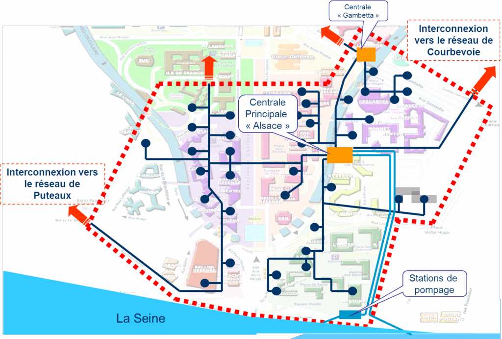 La visite du réseau de froid urbain est exceptionnelle : Le réseau de la S.U.C exploité par Dalkia assure une production de froid de +120 MW sur plus de 10 Kms de réseau autour du quatier de la défense (Courbevoie & Puteaux)
